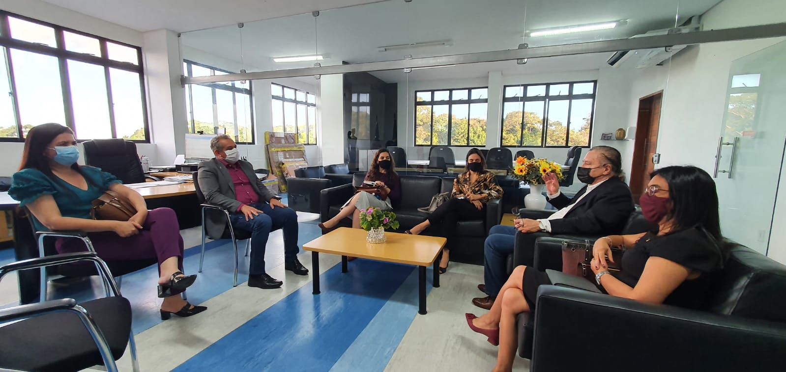 Também participaram da reunião a Diretora Regional do Sesc, Juliana Fernandes, e as diretoras do Senac Indira Brandão (Diretora Administrativa e Financeira) e Vera Lúcia Silva (Diretora de Educação Profissional).